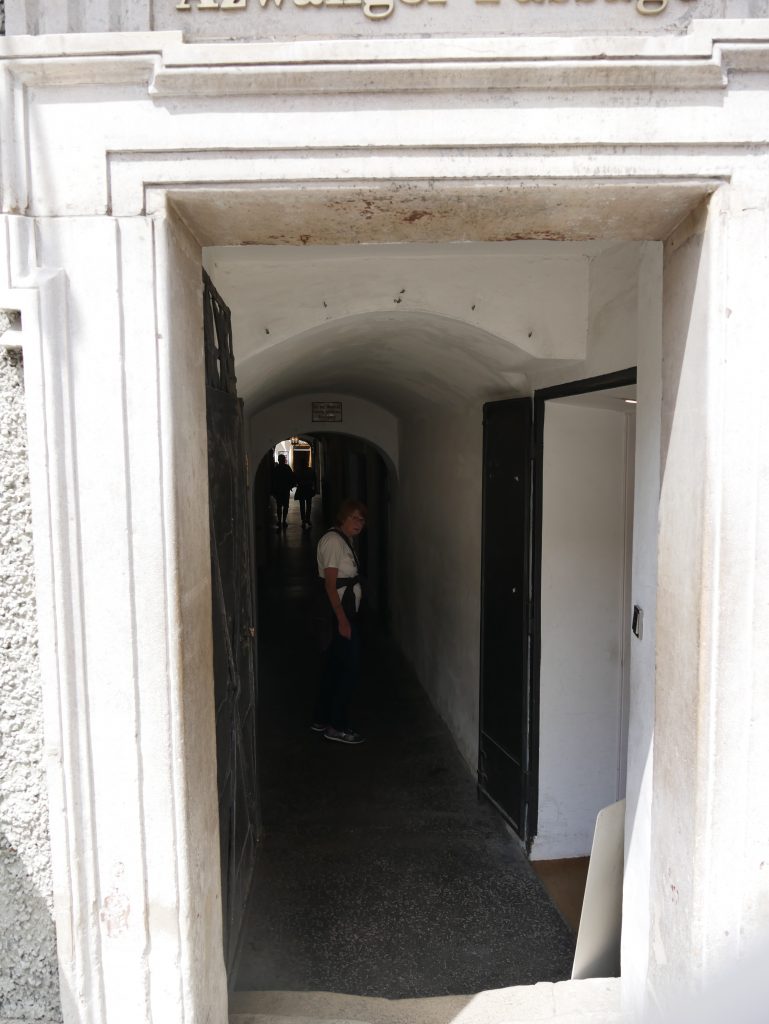 Vorne das dunkle Langhaus, hinten der helle gotische Hallenchor.Rund um den Hochaltar befinden sich acht verschiedene hübsche Chorkapellen.Wir machen uns auf zum Wahrzeichen der Stadt, die Festung Hohensalzburg.