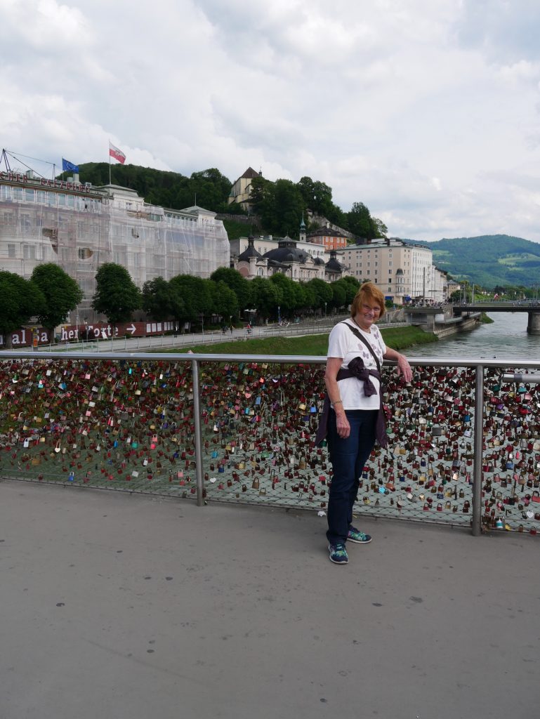 Wir überqueren die Donau auf dem Weg zum Mirabellengarten.