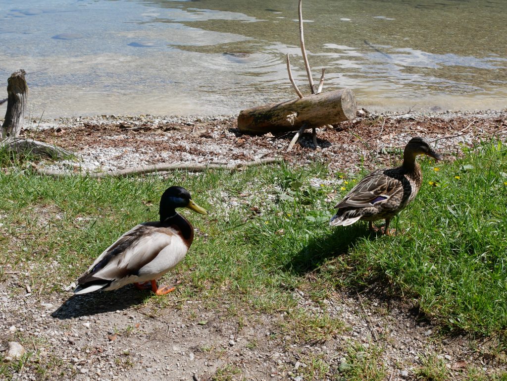 1134 wurde hier eine erste Kapelle errichtet, die                           Dreifaltigkeitsbasilika Chunigesse. 1522 wurde sie dem heiligen Bartholomäus geweiht, dem Schutzpatron der Sennen und Almbauern. 1697 wurde sie abgerissen und durch den heutigen   barocken Bau ersetzt.Wir machen einen netten kleinen Rundgang der zuerst am Ufer entlang führt. Zwischendurch setzten wir uns kurz auf eine Bank und bekommen sofort Besuch von diesem netten Pärchen.Zurück geht es durch ein hübsches kleines Wäldchen.
