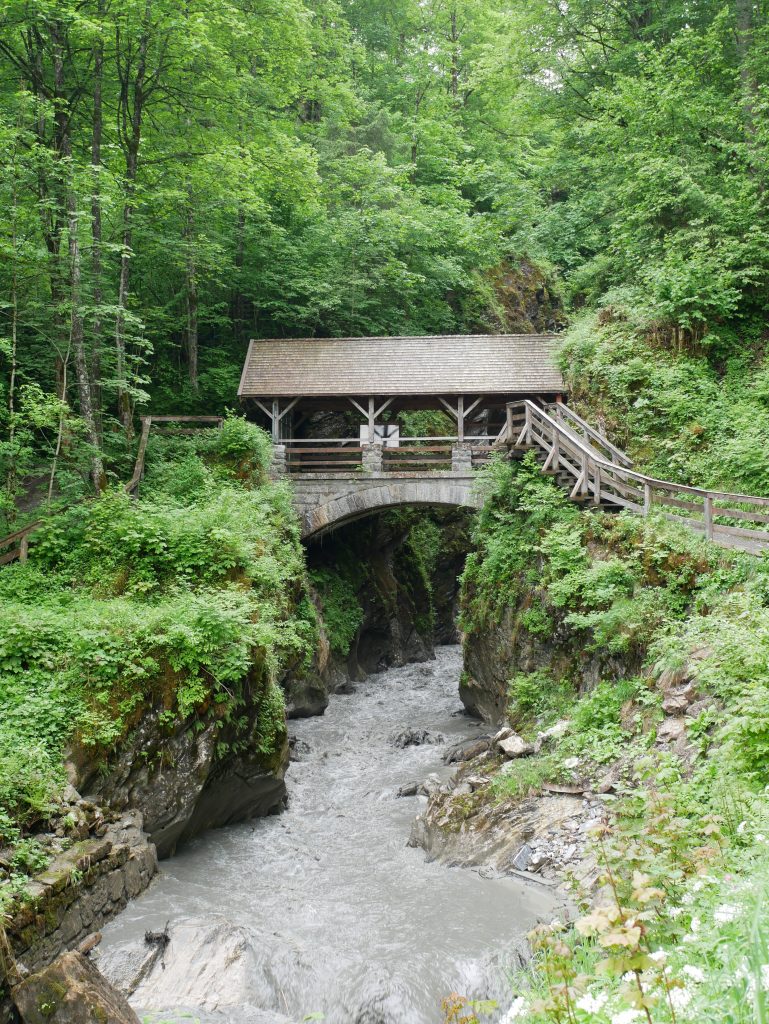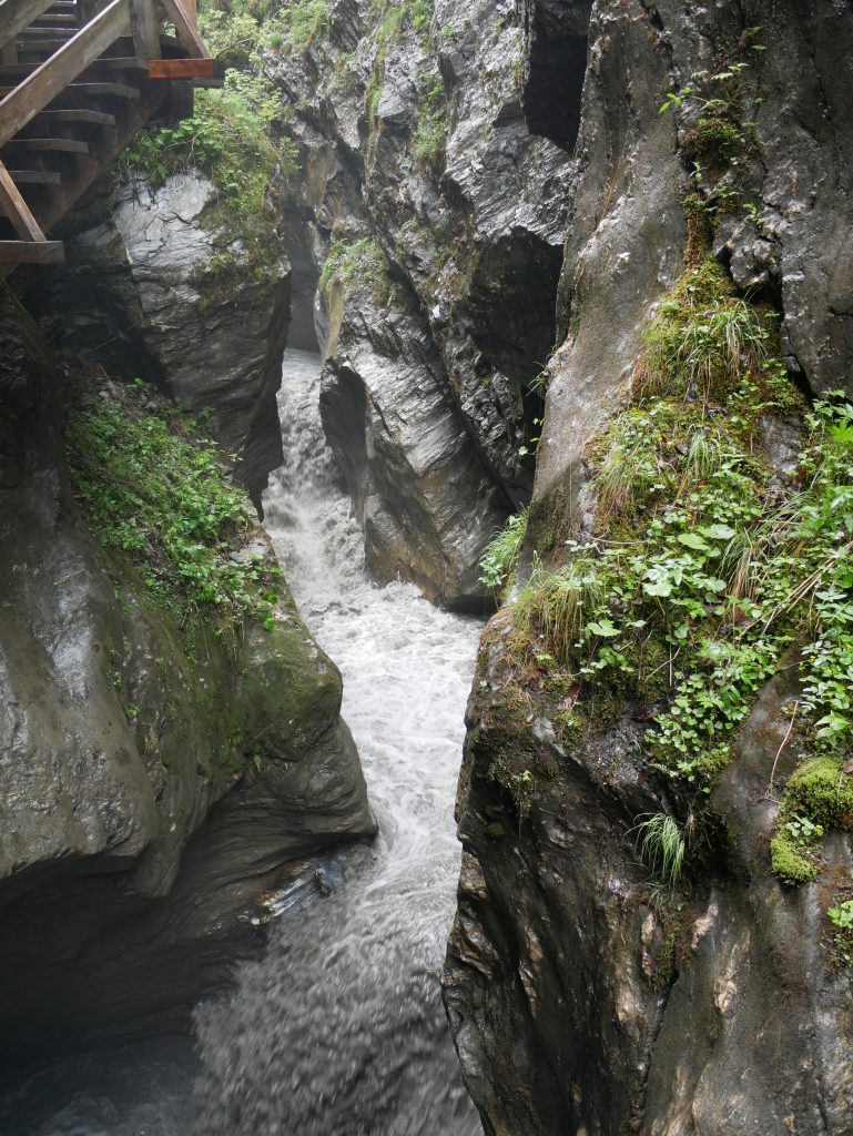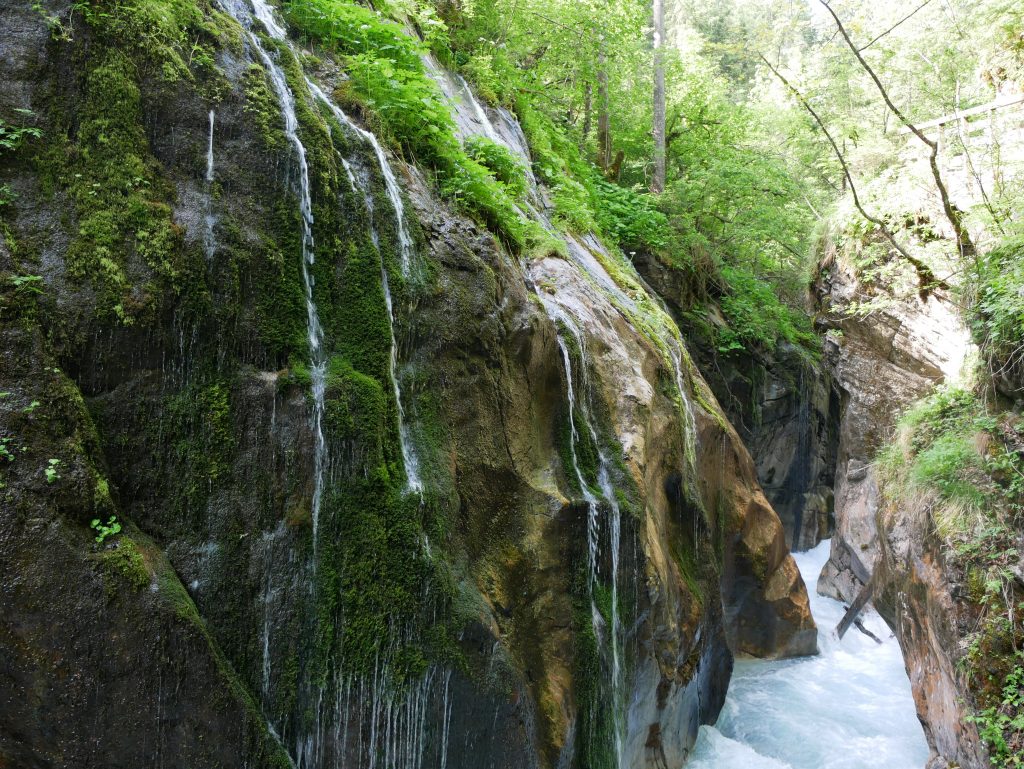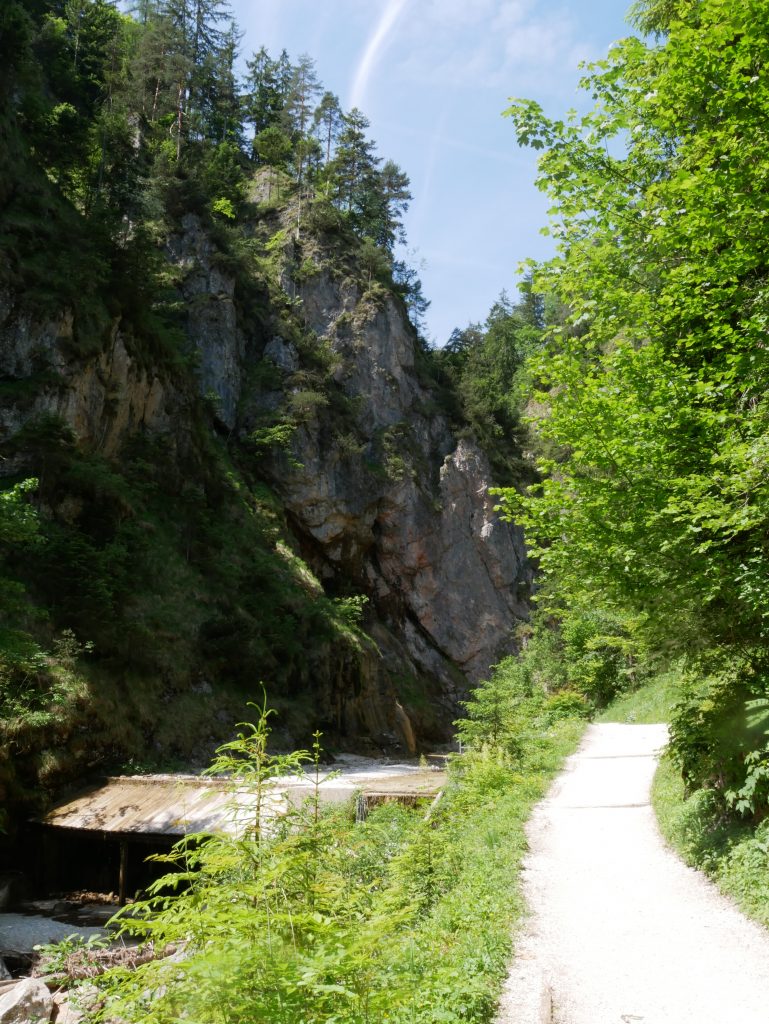 Die Wimbachklamm ist nur 200 Meter lang und man geht auf einem hölzernen ehemaligen Holztriftsteig.