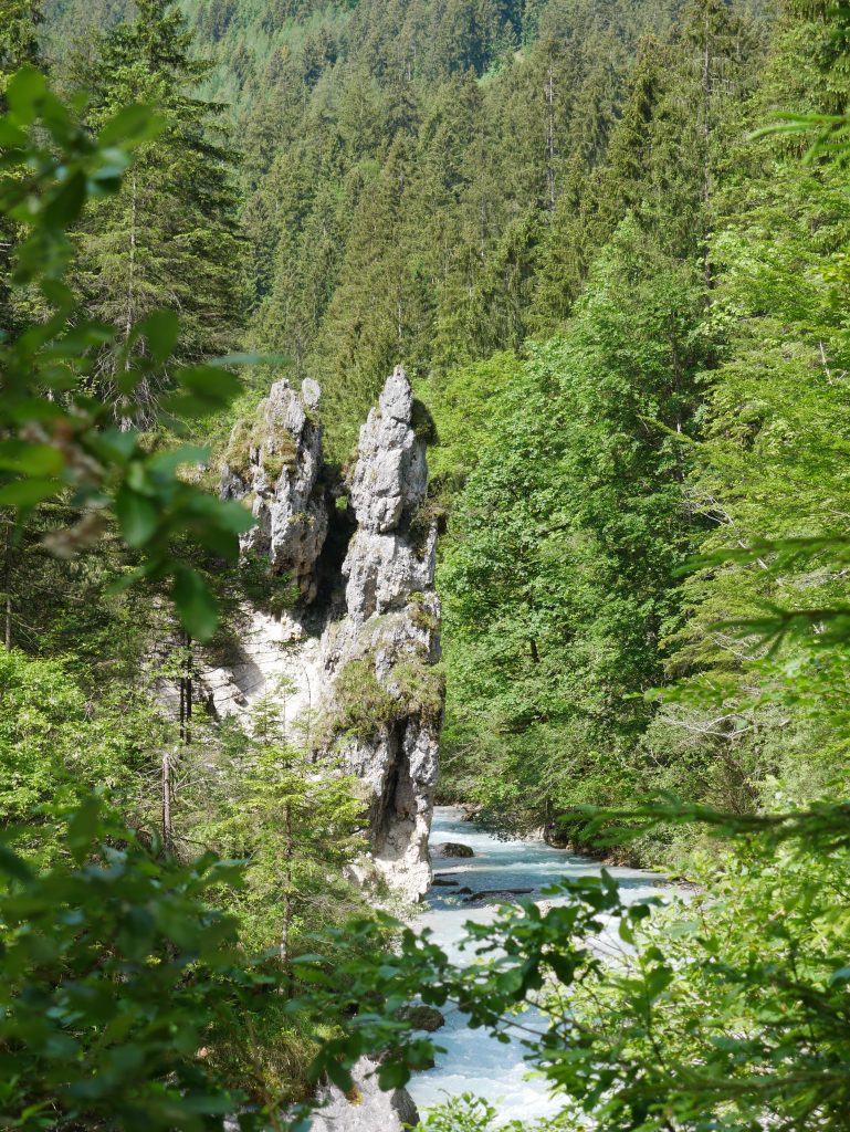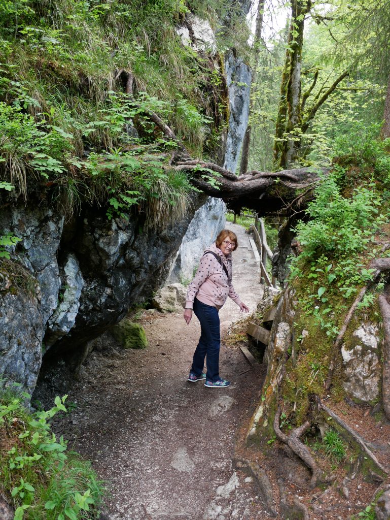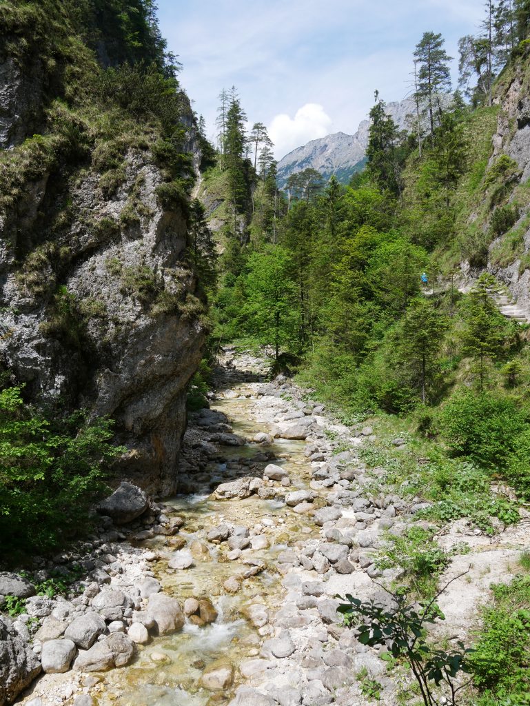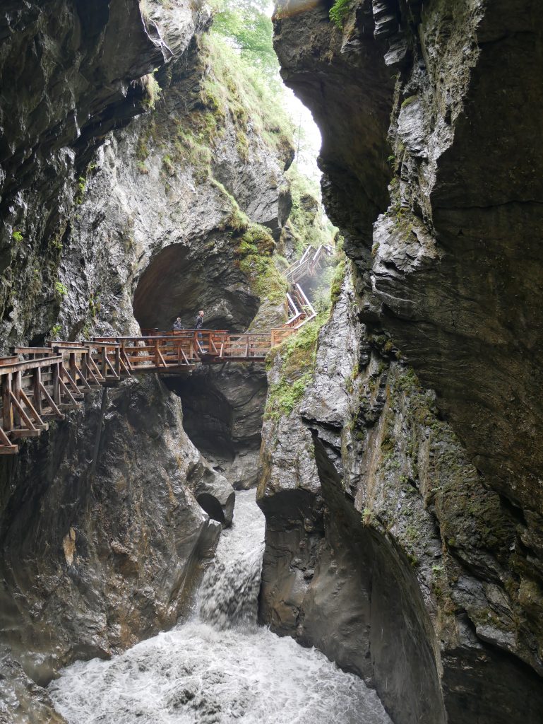 Die Wimbachklamm ist nur 200 Meter lang und man geht auf einem hölzernen ehemaligen Holztriftsteig.