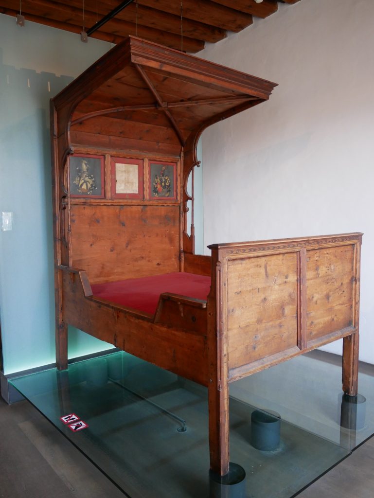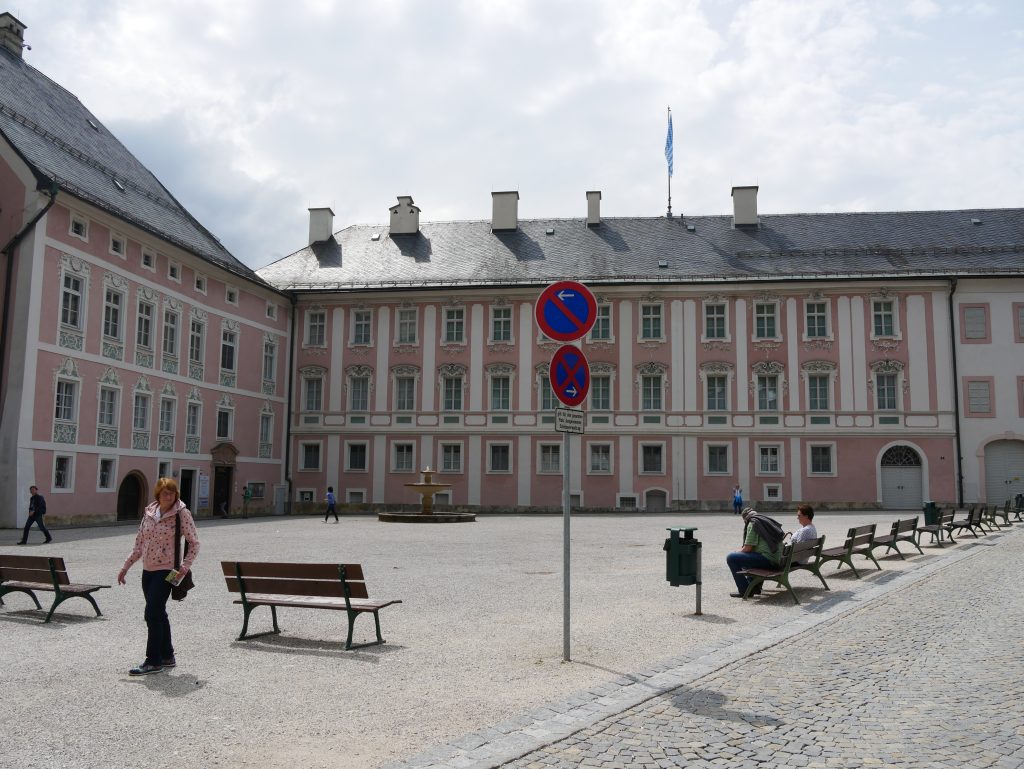 Der Marktbrunnen aus dem Jahre 1558. Der Mittelpfeiler mit dem bayrischen Löwen kam 1628 hinzu.Eine weitere Kirche. Die Stiftskirche St. Peter und Johannes der Täufer. Als wir da vorbeikommen ist gerade der Gottesdiest zu Ende. Eine Gruppe festlich in Trachten gekleideter Leute wartet davor mit einem Täufling und ist natürlich eine Attraktion für die Touristen. Ich verzichte darauf sie zu fotografieren und wir gehen kurz in die Kirche hinein. Schon von weitem sieht man die Schwaden vom Weihrauch. Zu riechen ist es auch!Direkt neben der Kirche ist das Schloss, das teilweise als Museum zugänglich ist. Der älteste Gebäudeteil ist aus dem Jahre 1180. Es wird bis heute als Jagdschloss bzw Sommerresidenz benutzt. Es gehört den Wittelsbachern, anscheinend eines der ältesten         deutschen Adelshäuser, aus dem viele Herzöge, Kurfürsten und Könige aus Bayern hervorgingen.