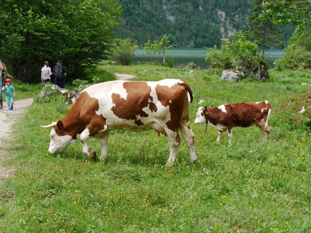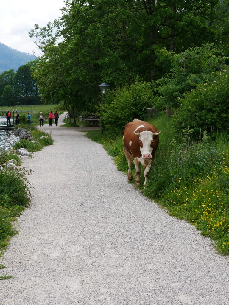 Auf dem Weg zurück zum Auto begegnen uns noch freilaufende Kühe!Dann machen wir uns auf nach Berchtesgaden zu unserer nächsten Pension.