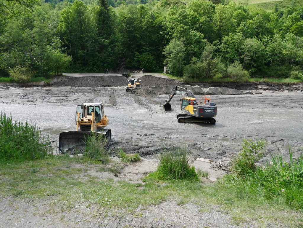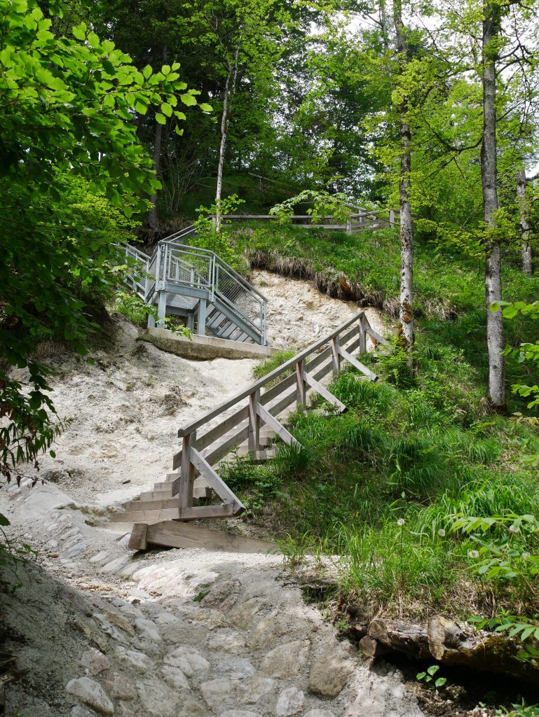 Da wir noch Zeit haben und das Wetter immer besser wird beschließen wir noch etwas zu „wandern“. In der Nähe gibt es eine nette Runde um den Klammsee. Allerdings suchen wir den See! Wo ist das Wasser geblieben? Jetzt ist auch klar warum das Wasser in der Klamm so grau ist. Es ist trotzdem ganz nett.