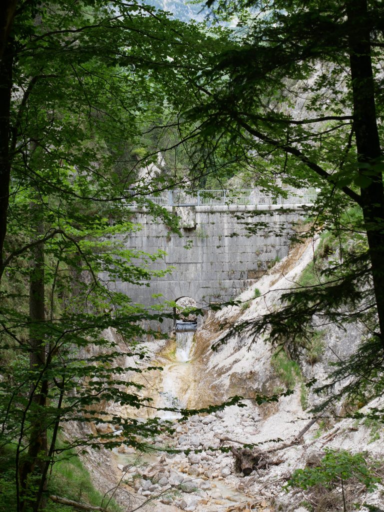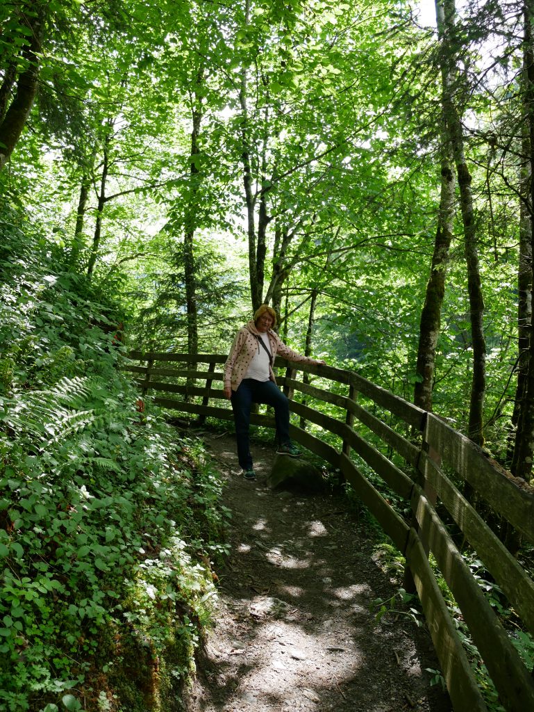 Manche Wege sind für mich eine Herausforderung, sind sie doch schmal und zum Teil geht es daneben tief hinab. Außerdem ist Kondition gefragt da es immer weiter bergauf geht und es ist ziemlich warm.Der Sulzerwasserfall, Fallhöhe 119 Meter.Nach 1 1/2 Stunden erreiche ich den Staudamm. Gebaut 1834. Bis 1963 hat man hier noch Holz getriftet, d.h. Holz ins Tal befördert. Durch den Staudamm wurde eine Flutwelle geschaffen, der die Stämme mitriss.Ich entschließe mich nicht die Klamm wieder zurückzugehen sondern einen ausgeschilderten Rundweg zu nehmen der genauso lange dauern soll.