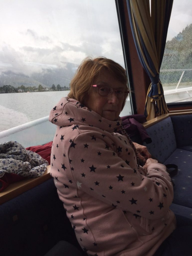 Wir frühstücken erstmal gemütlich. Auf unserem Tisch liegen kleine Flyer mit aktuellen Informationen des heutigen Tages. Unter anderem auch Vorschläge für Unternehmungen.  Da es immer noch regnet und die Wolken sehr tief hängen entscheiden wir uns für eine Rundfahrt mit dem Bummelzug um den Zeller See. Treffpunkt ist um 11 Uhr am Hallenbad. Um 11:30 Uhr ist immer noch kein Bummelzug aufgetaucht, also schlendern wir durch die Stadt und überlegen was wir jetzt machen wollen. Zu allem     Überfluss habe ich zwar meinen Fotoapparat dabei aber keine Speicherkarte!!