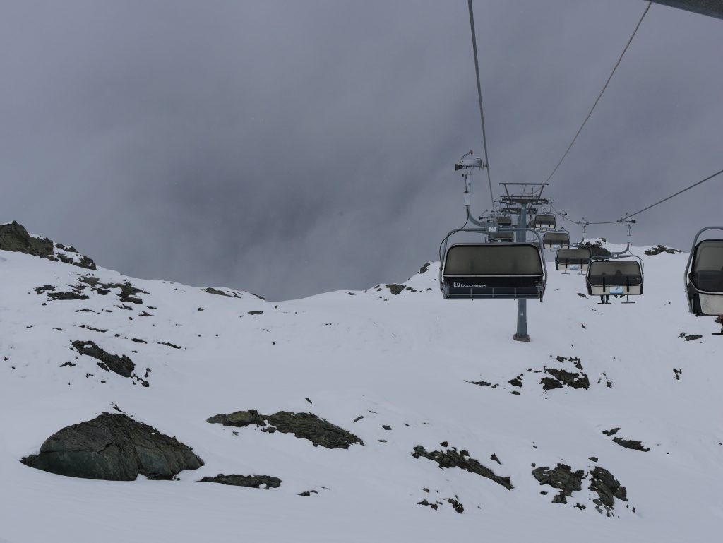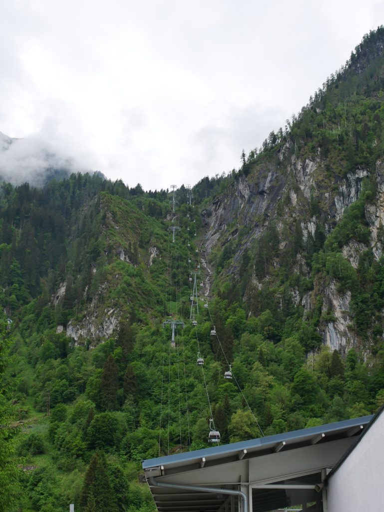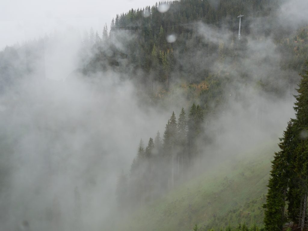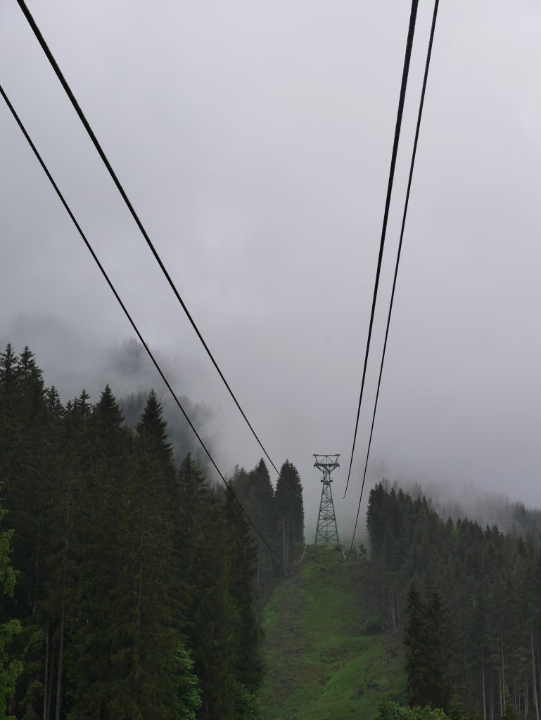 Trotzdem machen wir uns auf in Richtung Kaprun zum Kitzsteinhorn. Obwohl die Sicht nicht besonders gut ist wagen wir uns in die erste Gondelbahn.