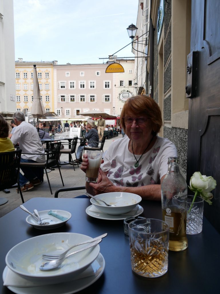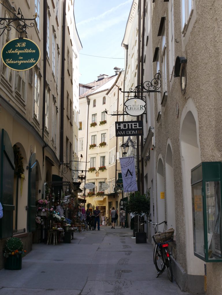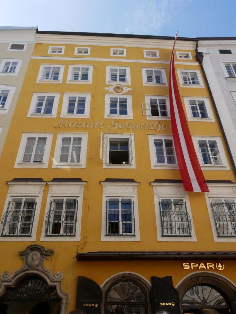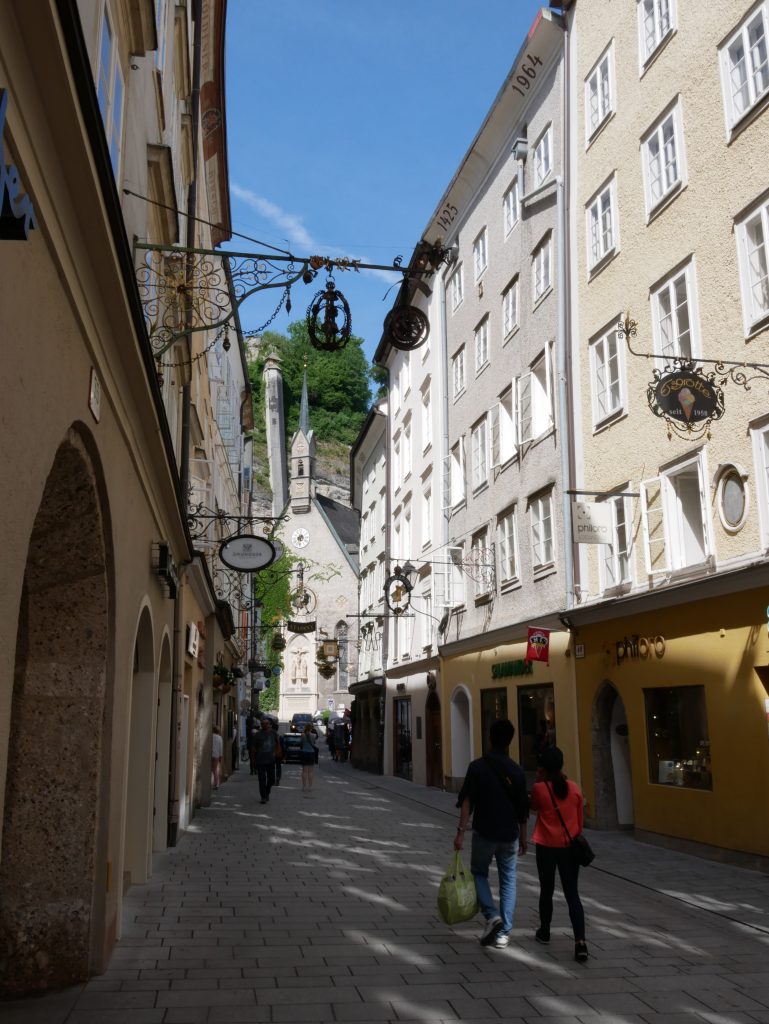 Attraktion ist natürlich auch das Mozart Geburtshaus, der hier 1756 geboren wurde.Gut zu sehen ist hier, das die Fenster der Häuser nach oben hin immer kleiner werden.