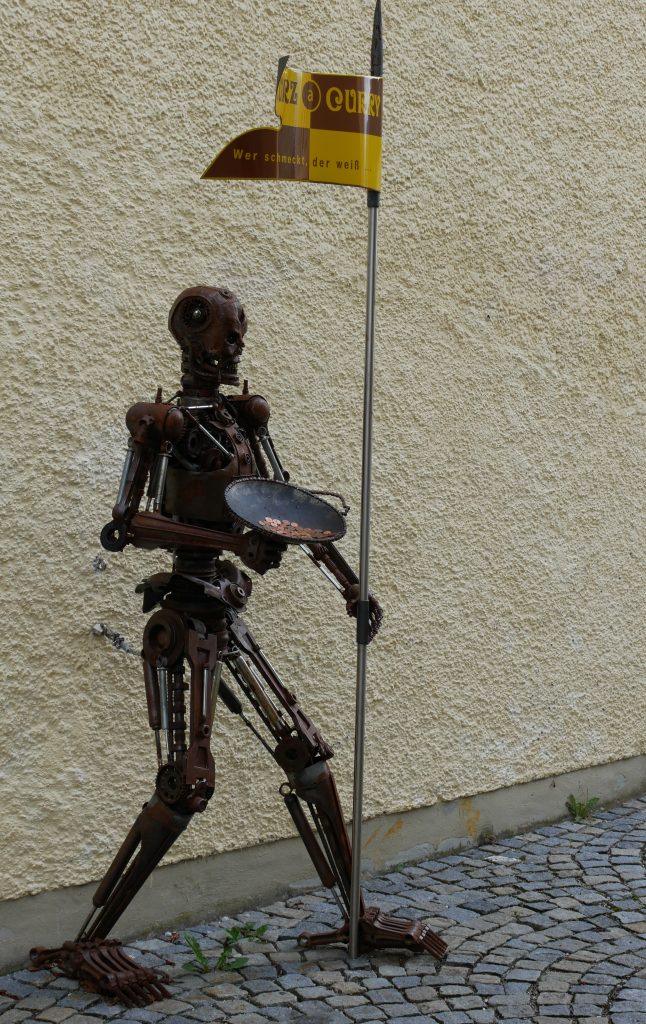 Und am diesen, der Werbung für ein Restaurant macht 🙂Weiter geht es an einem Friedhof vorbei zur Franziskanerkirche, entstanden um 1480. Bis 1699 Klosterkirche des Frauenstifts der Augustinerinnen.Und von innenEs gibt sogar noch eine evangelische Kirche, bis dahin sind wir aber nicht gekommen. Getroffen haben wir noch diesen lustigen Kerl.Wir haben genug von Sightseeing und machen uns auf zur Wimbachklamm. Dort ist der Parkplatz so voll das wir umdrehen und uns auf den Rückweg machen. Das wollen wir uns nicht antun, vielleicht haben wir Dienstag mehr Glück.