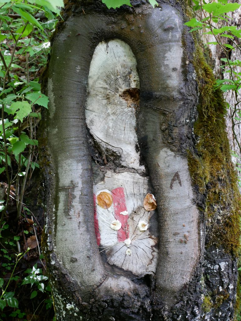 Oben angekommen?‍♀️Dann geht es endlich bergab. Erst entspannt dann immer steiler und mit Hindernissen 🙂Vorbei an lustigen Baumstämmen