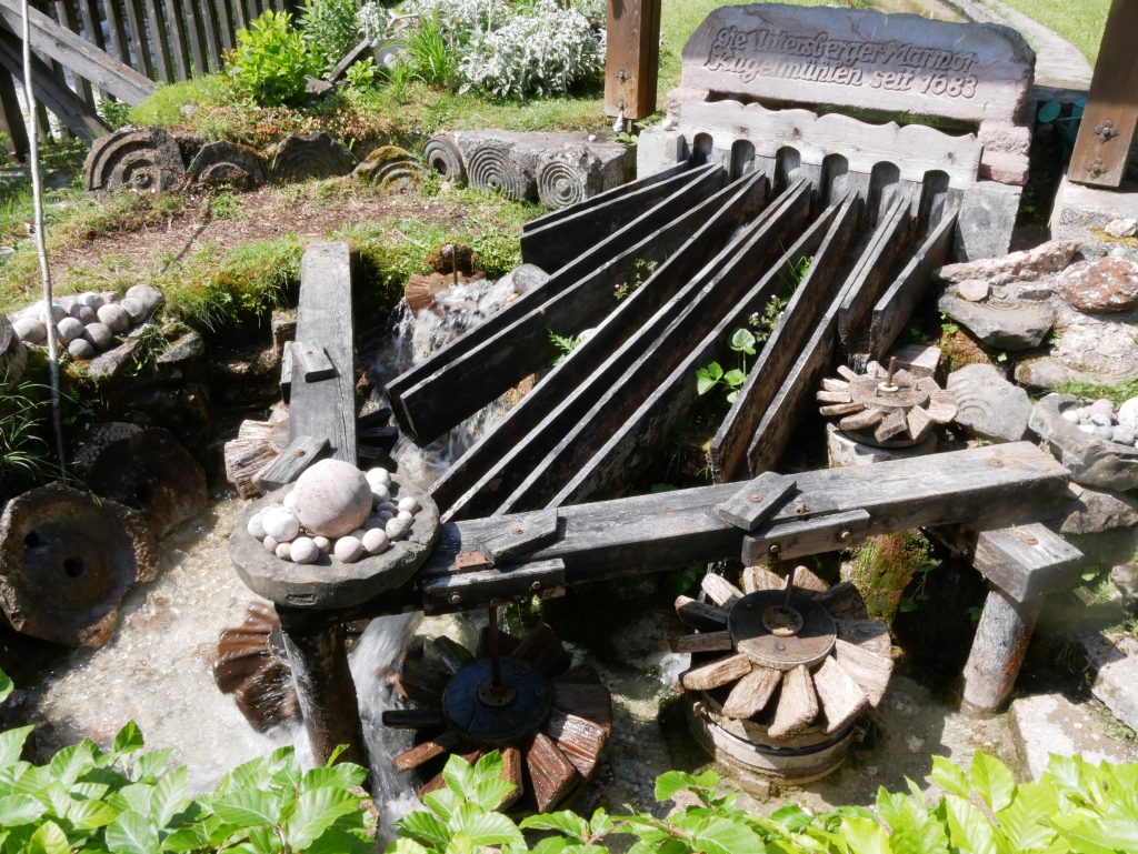 Dort steht kurz vor dem Eingang auch noch die Kugelmühle. Seit 1663 werden hier Marmorbrocken zur Kugeln geformt.
