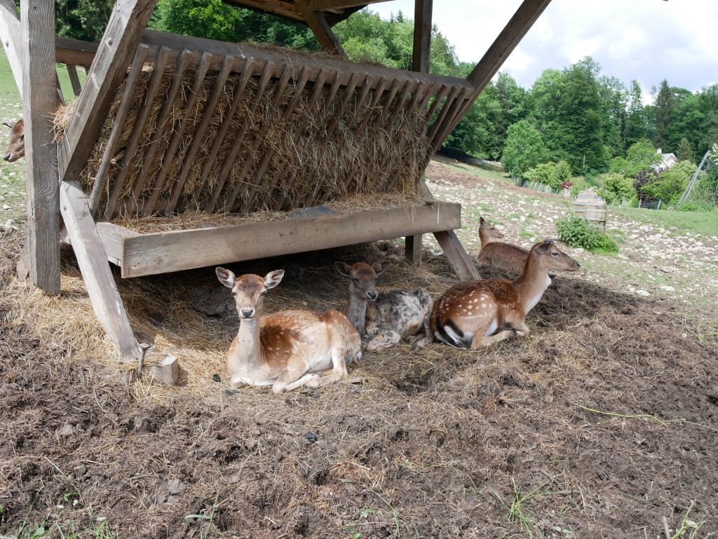 Vorbei geht es an einem WildgehegeHinein in den Waldziemlich steil bergaufund mitten im Wald das ?Die Sprungschanzen. Vertrauenserweckend?