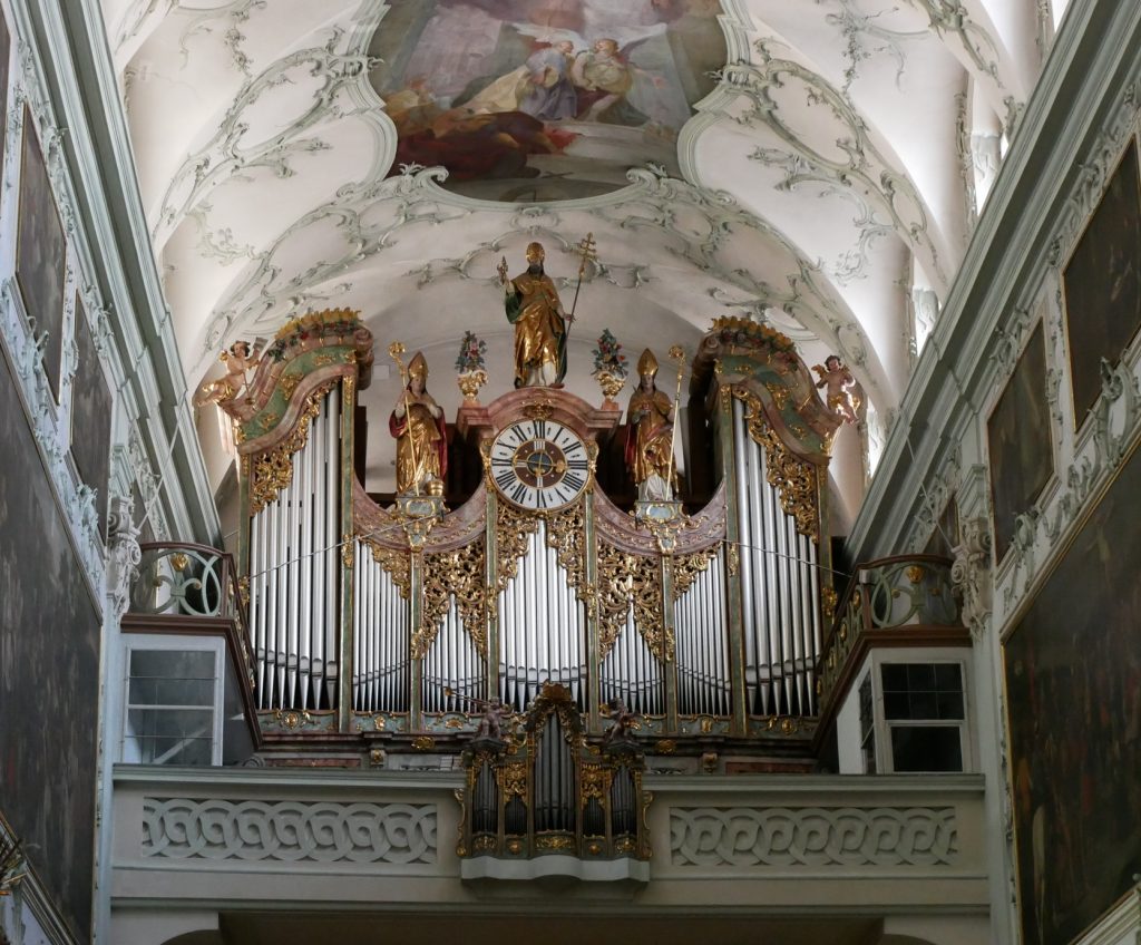 Mit einer hübschen Orgel.Als nächstes gehts zur Franziskanerkirche.  Sie ist eine der ältesten Kirchen in Salzburg. Bis 1139 gehört sie zum Benediktinermönchs-Stift St. Peter, zwischen 1130 und 1583 war sie dann Klosterkirche der Petersfrauen der Benediktinerinnen, nach 1189 war sie bis 1628 gleichzeitig Pfarrkirche der Stadt. 1635 wurde schließlich der Dom zur neuen Pfarrkirche. 1592 wird die Kirche Klosterkirche der Franziskaner.