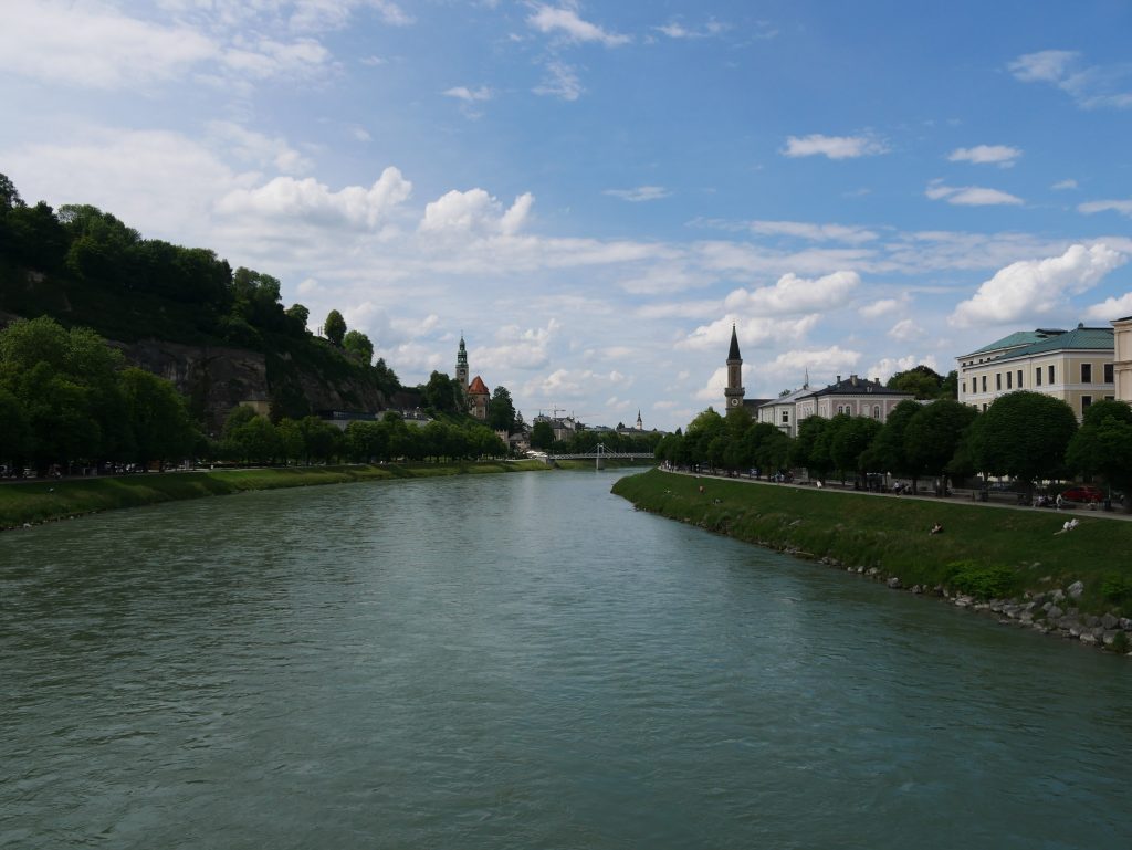 Wir überqueren die Donau auf dem Weg zum Mirabellengarten.