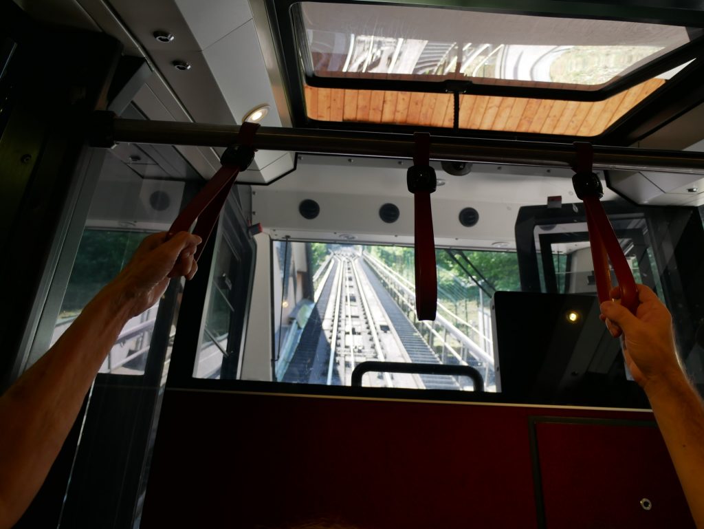 Hinauf geht es mit der Festungsbahn, einer Standseilbahn. Gebaut 1892 als Wasserballastbahn. Durch ihre Abhänigkeit vom Wasser musste die Bahn im Winter geschlossen werden. Deshalb wurde sie 1960  durch eine elektrisch angetriebene Bahn ersetzt.