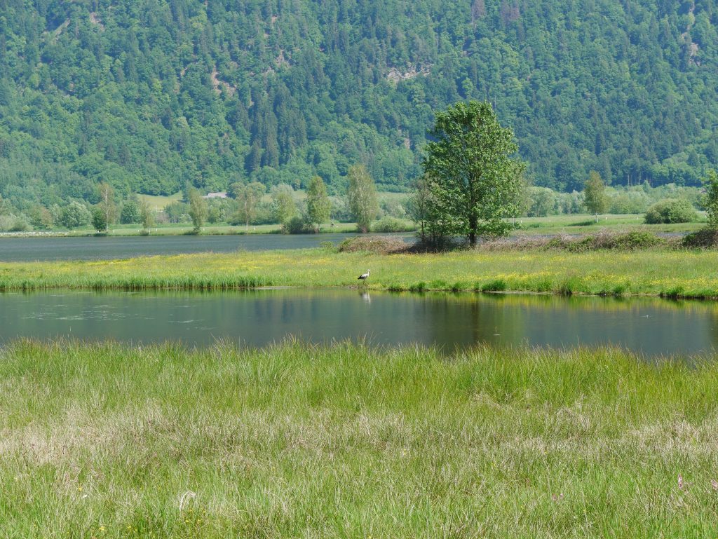 Wir fahren zur nächsten Station, der Aichinger Hütte. Dort befindet sich die Ausstellung „Die Herrscher der Lüfte „. Wir erkunden die Schautafeln und testen unser Wissen über Vögel. Highlight: ein Trichter um den Vogelstimmen zu lauschen.