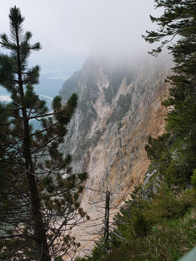 Es geht weiter hinunter zur Aussichtsplattform „Rote Wand“ auf 1483 Meter. Der Alpengarten ist leider noch geschlossen.