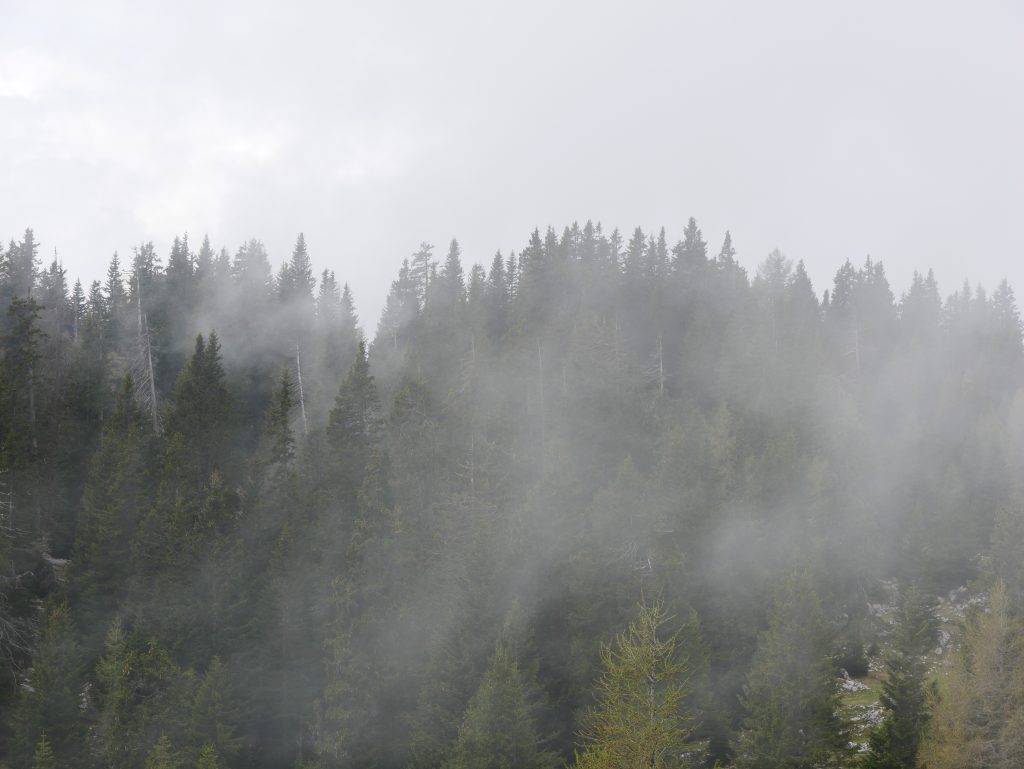 Auf 1307 Meter Höhe befindet sich der Dreiländereck Parkplatz. Leider keine weitere Erklärung wo Österreich aufhört und Italien und Slowakei beginnen. Fotografiere einfach in Blickrichtung des dort stehenden Fernrohrs 🙂